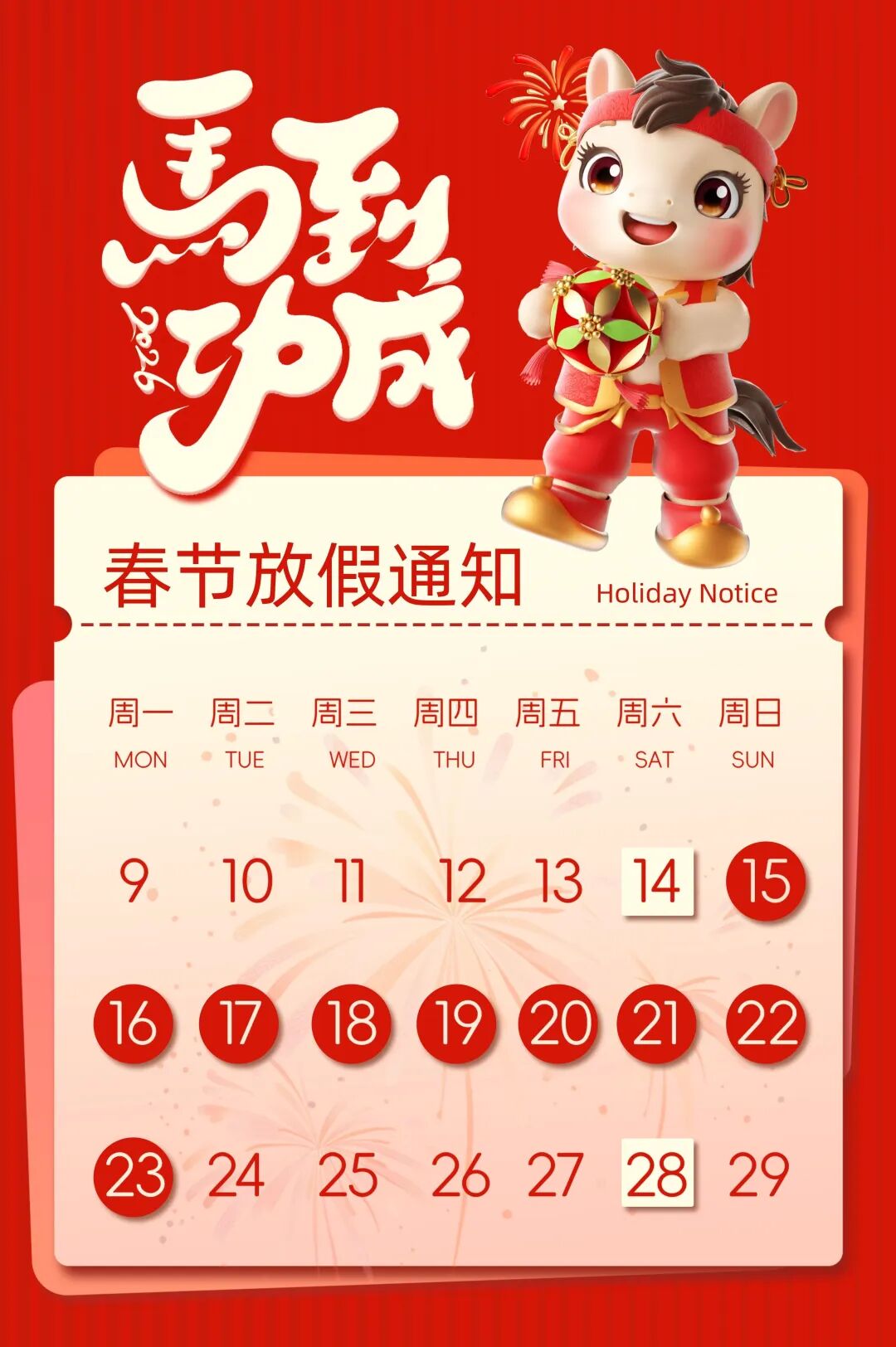 2026年2月15日(星期日)至2月23日(星期一),门诊连续停诊9天。